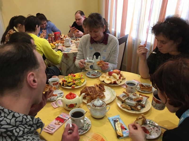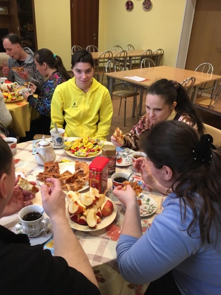 Для победителя и ее друзей были накрыты столы, с разными угощениями. Сотрудники пищеблока испекли вкусный пирог.