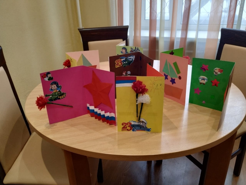 / В социально-бытовой комнате прошёл мастер-класс "Открытка для к Дню защитника Отечества"