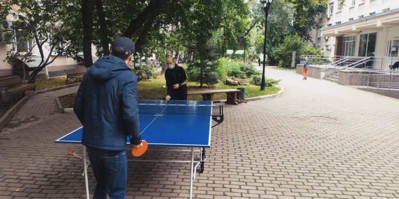 | Теплая летняя погода позволяет заниматься настольным теннисом во дворе нашего дома.