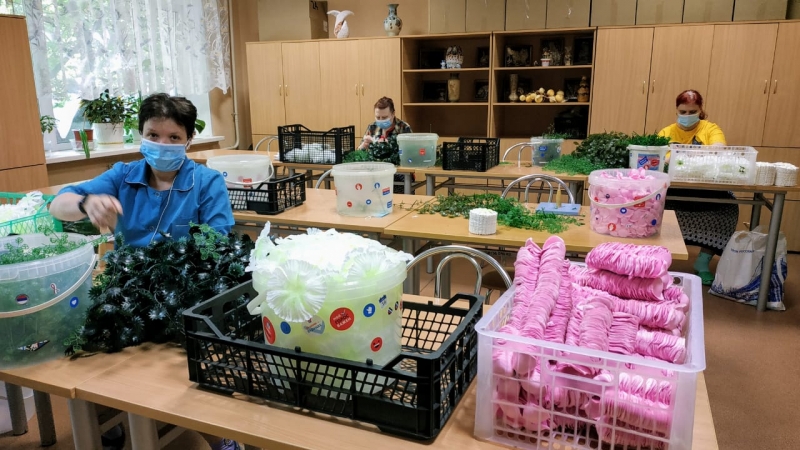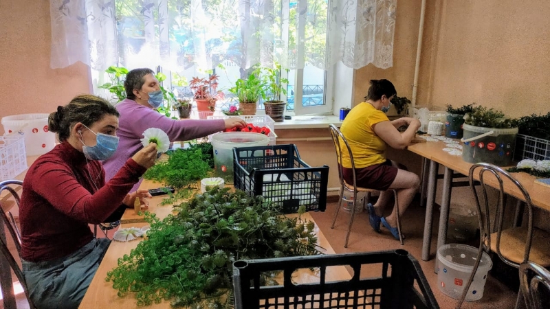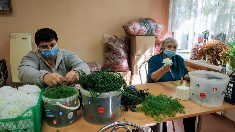 В кабинете трудотерапии ежедневно работают наши проживающие. Выполняя посильную работу, ребята дополнительно разрабатывают мелкую моторику рук.
