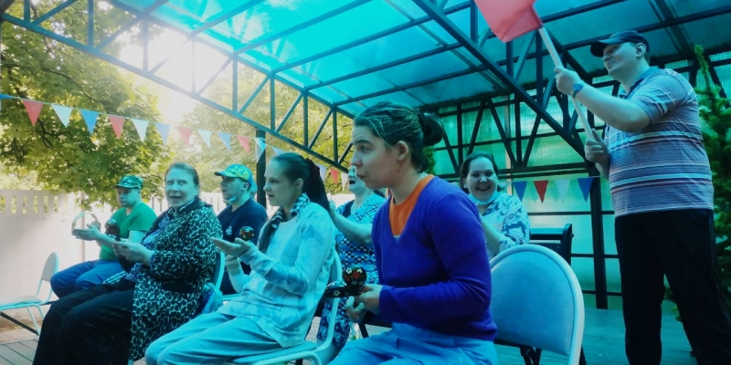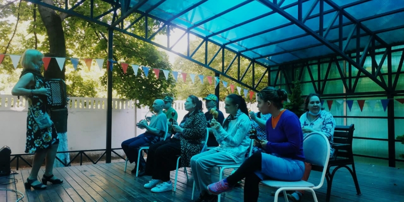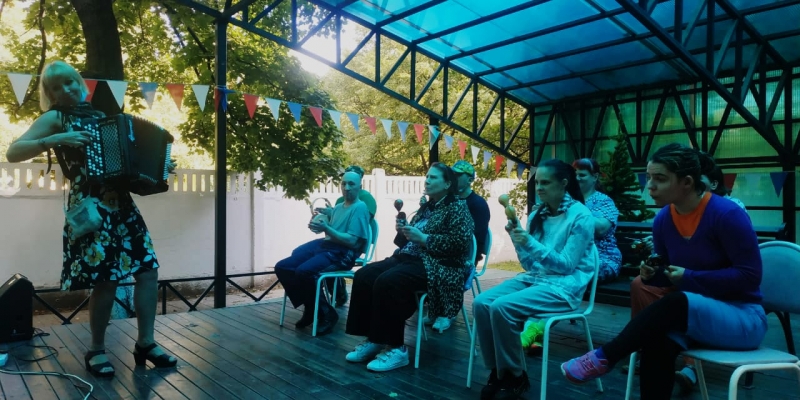 Пение под аккордеон на летней эстраде . Регулярно в интернате проводятся небольшие концерты под баян. Культорганизатор виртуозно исполняя всеми любимые песни привлекает к творчеству множество проживающих.