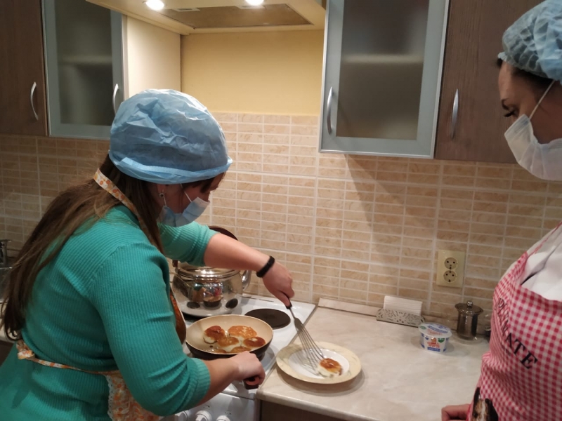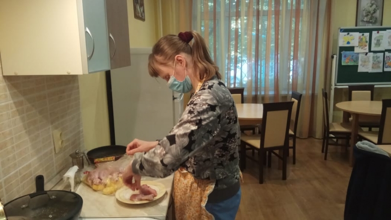 Сегодня ребята в социально-бытовой комнате готовили блюда - «Сырники» и «Курицу с картошкой». Собственными силами сервировали стол и насладились своими трудами.