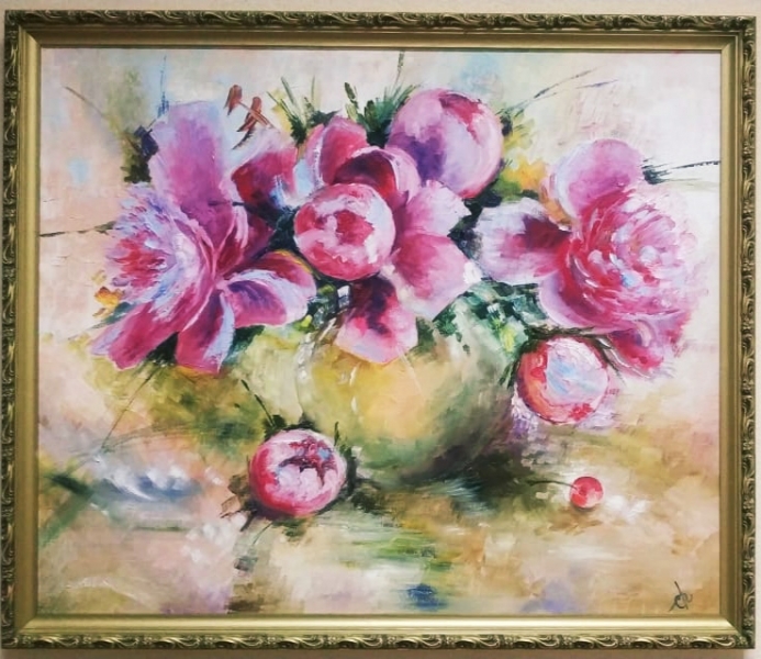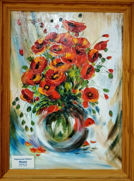 Продолжаем знакомить с живописными картинами наших подопечных. Любимая тема – цветы. Маки, пионы, ирисы, розы.. Вся летняя гамма представлена в этих полотнах.