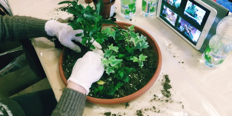 В сентябре 2020 года наше учреждение включилось в работу по проекту Межрегионального общественного благотворительного фонда «Качество жизни» «Стратегия развития Москвы в моих профессиональных планах». Проект реализуется при поддержке Департамента труда и социальной защиты населения г. Москвы. Цель проекта – помочь в социально-трудовой подготовке людям с инвалидностью. Дистанционно, под руководством преподавателей, ребята постигают основы выращивания декоративных растений. В этот раз они создали мини-пейзажи на тарелках.