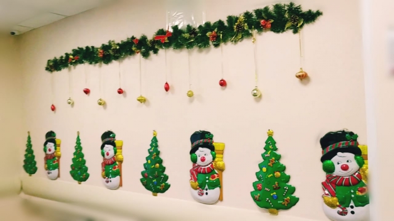 Ежегодно, в нашем учреждении проводится конкурс на лучшее новогоднее украшение интерьера. Сотрудники своими руками создают невероятно красивые инсталляции, предметы новогоднего декора, поднимая настроение себе и подопечным. Кто бы мог подумать, например, что красивые снежинки на стене сделаны из макарон, а разноцветные ёлочные игрушки - из соленого теста. Распахнув двери в некоторые отделения, оказываешься словно в сказке! Подведены итоги нашего конкурса, мы поздравляем наших победителей и представляем первого победителя - 4 отделение милосердия, занявшее первое место!