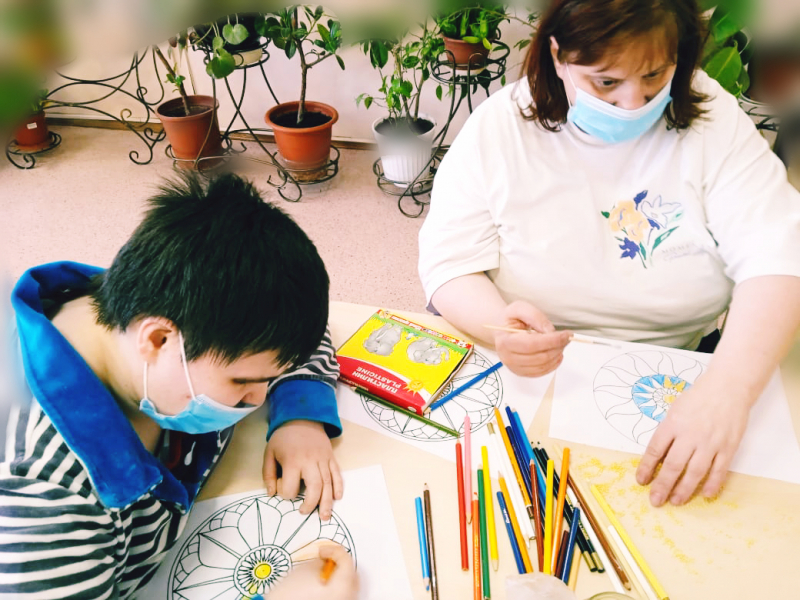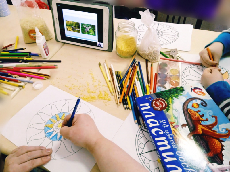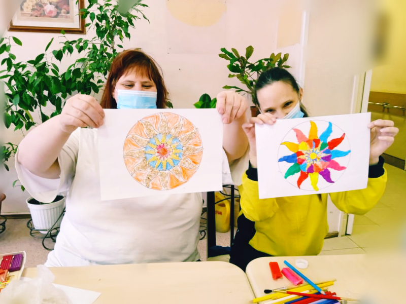 Психотерапевтический эффект мандалы открыл Карл Густав Юнг, проанализировав свои спонтанно нарисованные произведения, и связанные с этим изменения в самочувствии. Известный психотерапевт пришел к выводу, что мандала - проекция комплексов человека, орудие, помогающее нам найти свою сущность, очиститься от страха, чувства вины, депрессии и даже физической боли. Совместно с волонтёрами фонда "Старость в радость", состоялся мастер-класс по рисованию мандал. На занятии ребята заполняли заранее подготовленные трафареты, раскрашивая их яркими крупами, пластилином и цветными карандашами.