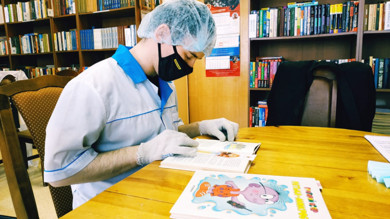 Библиотерапия – метод психотерапии, использующий художественную литературу, как одну из форм лечения словом. Это способ коррекции психического состояния человека, с помощью специально подобранной литературы. Библиотекарь Светлана Дюг, опираясь на возраст, характер и индивидуальные особенности получателей социальных услуг ежедневно проводит занятия, на которых предлагает прочитать рассказ или целое произведение. «При чтении необходимо сконцентрироваться на содержании произведения, не отвлекаясь на посторонние предметы. После прочитанного отрывка обязательно нужно пересказывать содержание, это улучшает словарный запас ребят» - говорит библиотекарь. Ребята с большим интересом посещают занятия, которые благотворно влияют на психологическое состояние в период карантинных мер.