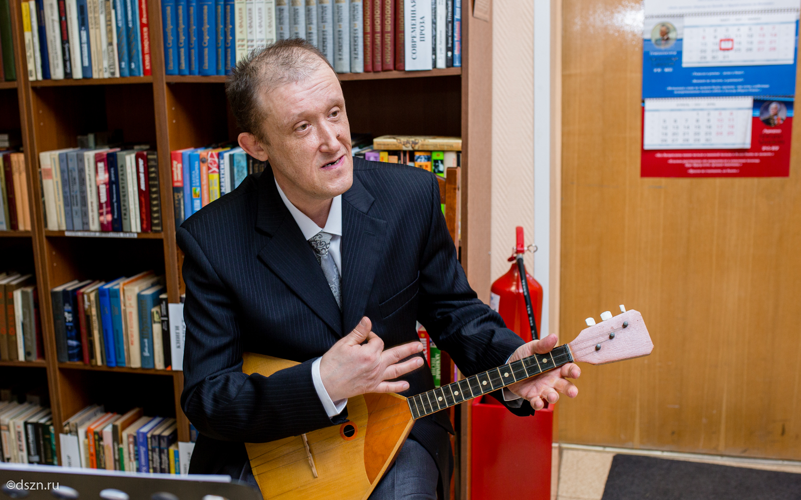 Александр Шарохин играет для друзей на балалайке