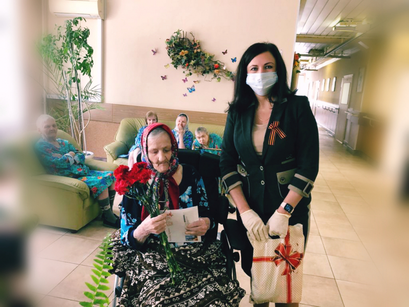 Искренней признательности достойны самоотверженные труженики фронтового тыла, вложившие в руки воинов грозное оружие Победы. Работать и выполнять свои обязанности в полную силу во время того, как на улицах города бушует война – это подвиг. Когда советские солдаты проявляли чудеса героизма на фронте, труженики тыла в годы Великой Отечественной войны создавали фундамент победы. И тот факт, что большинство из них не слышало взрывов снарядов и над ними не свистели пули, ни в коей мере не преуменьшает их заслуг. С каждым годом их становится все меньше… В нашем учреждении осталось два труженика тыла, - Зинаида Михайловна Денисова и Мария Ивановна Королева. Директор нашего дома, Светлана Валерьевна Ситеева, поздравила тружеников тыла с Днем Победы и пожелала крепкого здоровья!