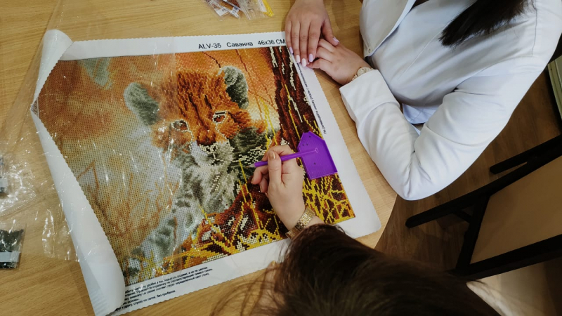 На досуге, наши ребята занимаются очень увлекательным видом творчества - алмазной мозаикой. Выкладывая рисунок стразами по определенной схеме, они концентрируются на точности выполнения, ведь стразы очень мелкие, работа кропотливая и долгая. Алмазная вышивка вырабатывает аккуратность, усидчивость, трудолюбие. И результат стоит затраченных усилий. Переливающиеся блестящие картины поражают своей красотой, становятся украшением интерьера или прекрасным подарком для друга.