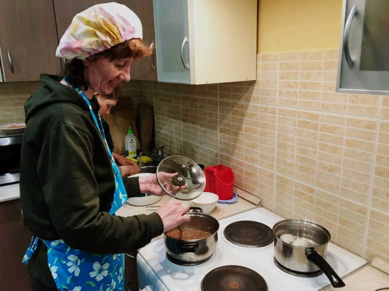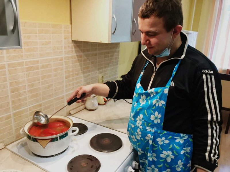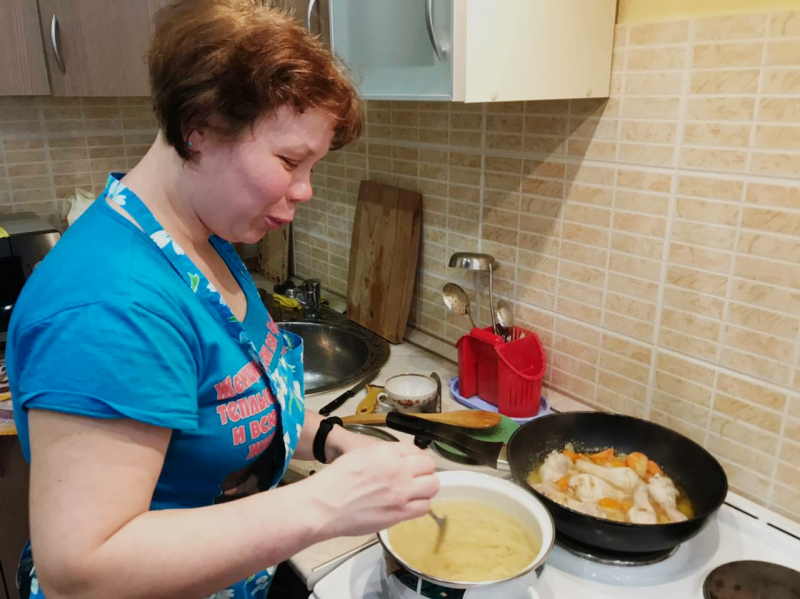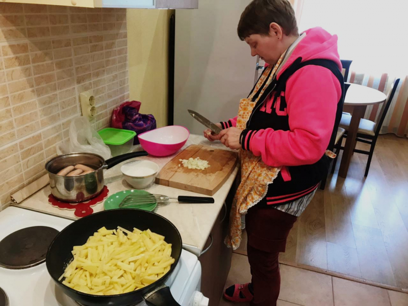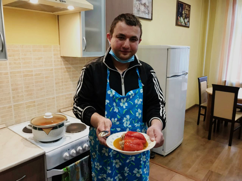 Многие наши ребята освоили навыки приготовления самых простых блюд, от яичницы до гречневой каши.. Некоторые, же, гурманы, не останавливаются на достигнутом, и совершенствуют свои кулинарные навыки приготавливая болгарский перец, салат Оливье или маринованные баклажаны. А помогает в этом нашим поварятам, специалист по реабилитации Светлана Дюг. Желающих приготовить что-нибудь вкусненькое хоть отбавляй, а в социально-бытовой комнате благоухают "вкусные" запахи.