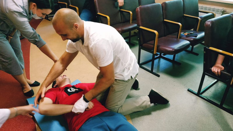 Наши сотрудники прошли курс обучения по оказанию первой помощи, отрабатывая четкий алгоритм действий на специальных манекенах. Как поступить, если человек подавился и не дышит, по каким признакам можно определить инсульт, инфаркт, как проводить сердечно-легочную реанимацию, что делать при носовом и наружном кровотечении, ожогах, а также о многом другом узнали наши сотрудники, прослушав курс по оказанию первой помощи. И уже есть свои первые результаты полученных знаний. Сотрудница нашего учреждения – Светлана Дюг, вчера 22.06.2021 г, возвращаясь с работы, сумела оказать первую помощь женщине с ребенком 4-5 лет, которая упала в обморок на перроне метро. Благодаря четким действиям, Светлана быстро привела в сознание девушку до приезда скорой помощи.
