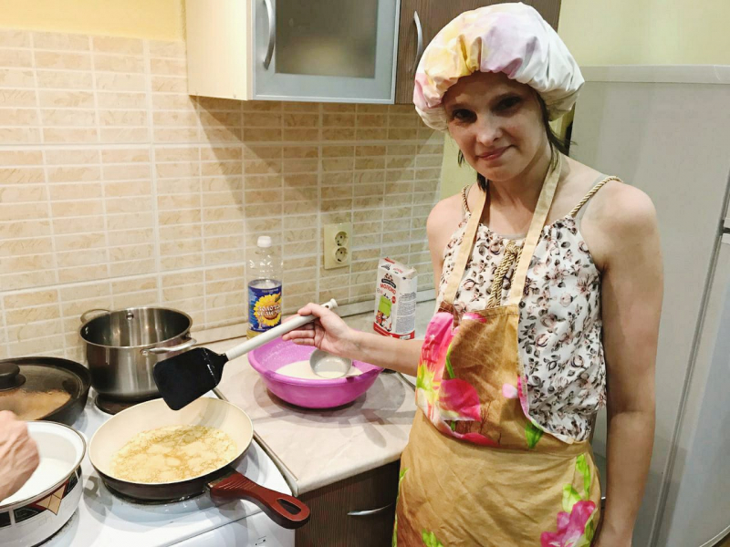 До масленицы еще далеко, а наши девушки уже совершенствуют свое мастерство в приготовлении вкусных блинчиков. Вариантов приготовления этого лакомства множество, можно приготовить блины на кефире, на молоке, сладкие и не очень, а для тех, кто постится – блинчики на воде. Главное, чтобы масса была однородной и в меру густой. В этот раз получились сладкие блины на молоке – лучшее лакомство к чаю!