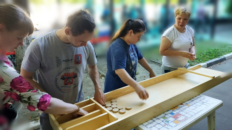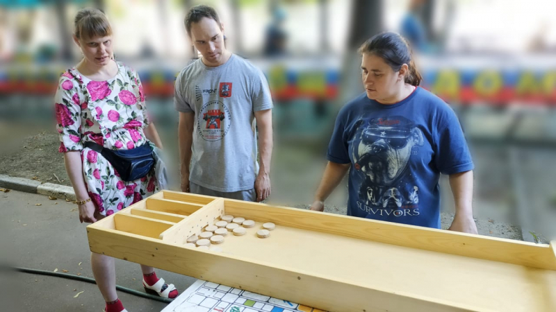 В теплую летнюю погоду, ребята отправляются во двор поиграть в одну из своих любимых настольных игр – жульбак. Это спортивная настольная деревянная игра, сутью которой является закатывание деревянных шайб в специальные лузы на доске. По правилам участники становятся на одном конце деревянной доски, а затем стараются попасть в специальные отверстия – каждое со своей стоимостью очков. Забитые шайбы ставят друг на друга в конце луз, а не забитые — возвращаются в исходное положение, и участник пробует снова их забить. Всего дается 3 попытки. Игра соревновательного характера, которая помогает провести весело время и улучшить настроение.