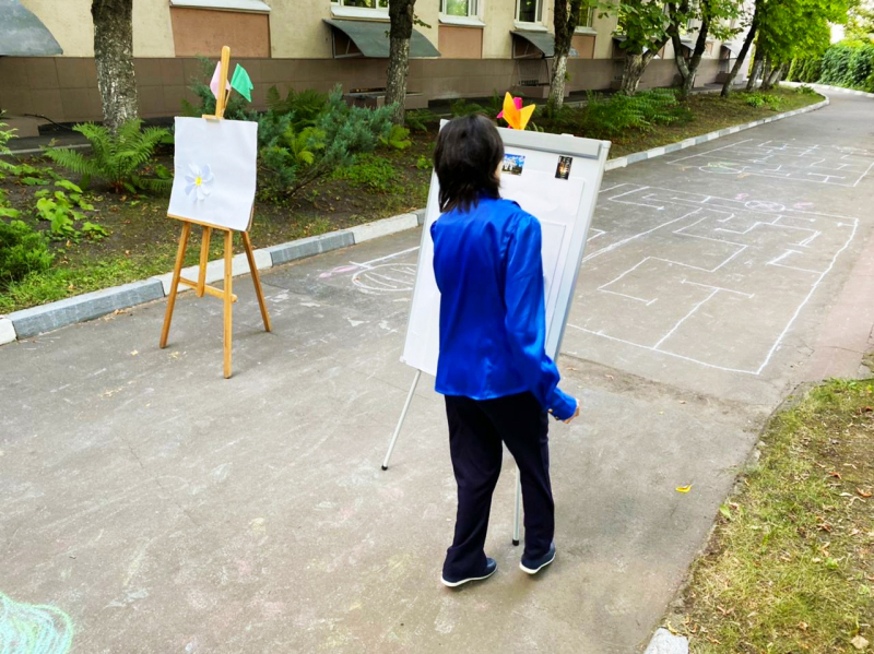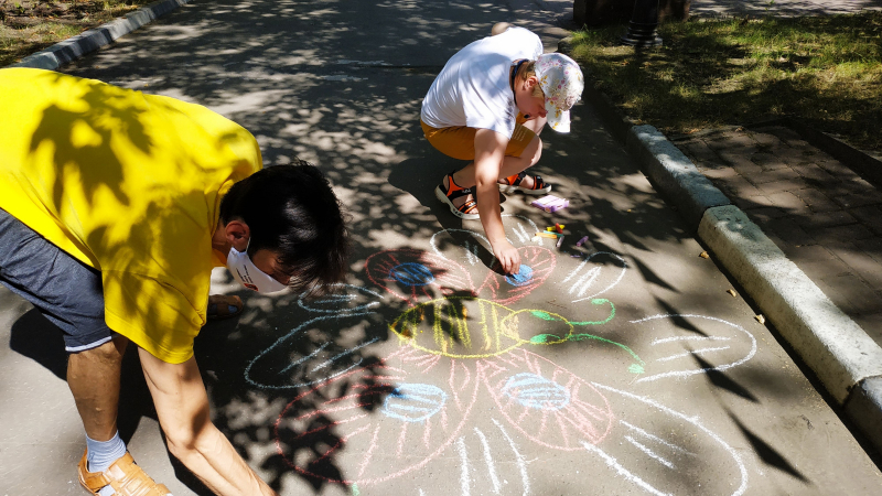 Стоит только вынести цветные мелки, как находятся желающие порисовать на асфальте.