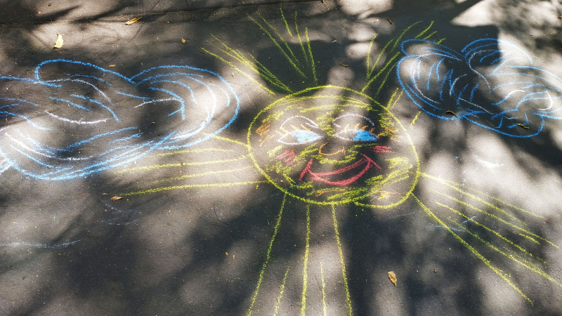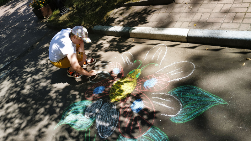 Приятный досуг - порисовать на асфальте, изобразить бабочку, цветок или радугу.