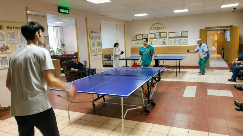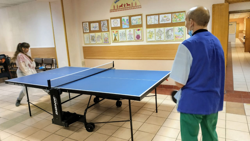 Наши ребята улучшают навыки игры в настольный теннис, совмещая приятный досуг с подготовкой к соревнованиям.