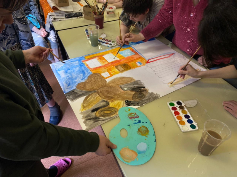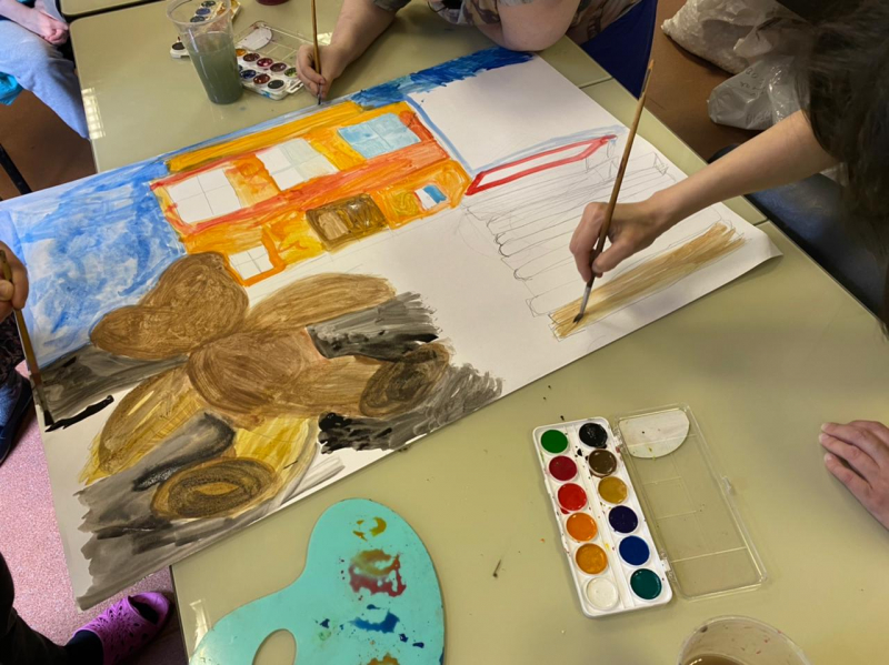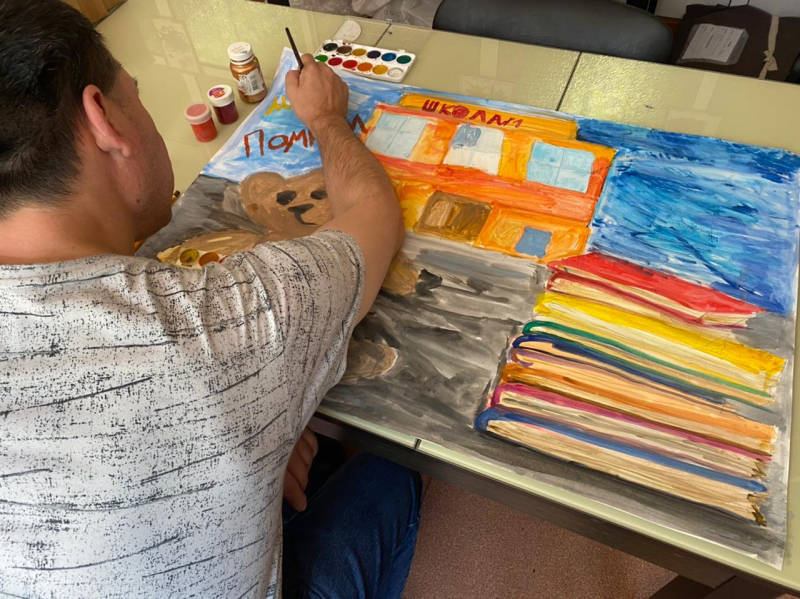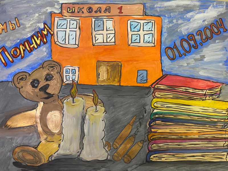 В преддверии Дня памяти жертв теракта в Беслане, в нашем учреждении проходит ряд мероприятий посвященных этому трагическому событию. Специалист по реабилитации, Положенцев К.В., провел тематическую беседу с подопечными, после которой, ребята в арт-студии изобразили это событие: плюшевый мишка, книжки, свечи и патроны у школы… Сюжет ребята выбрали сами.