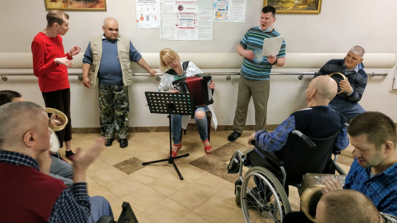 Народная музыка, народные музыкальные инструменты, баян всегда благотворно влияли на души людей. С песнями под баян и жить веселее. В отделениях милосердия всегда очень тепло встречают нашу творческую группу: «Гармошка пришла!» – передают друг другу бабули и высыпают в фойе, садятся, слушают и подпевают. Наиболее активные любительницы поплясать заказывают «Барыню» и «Цыганочку». В мужских отделениях танцоров поменьше, здесь больше любят подыгрывать в такт на шумовых инструментах: бубнах, ложках, бубенцах. Эмоциональный отклик, улыбки на лицах и аплодисменты – это лучшая награда для музыканта.