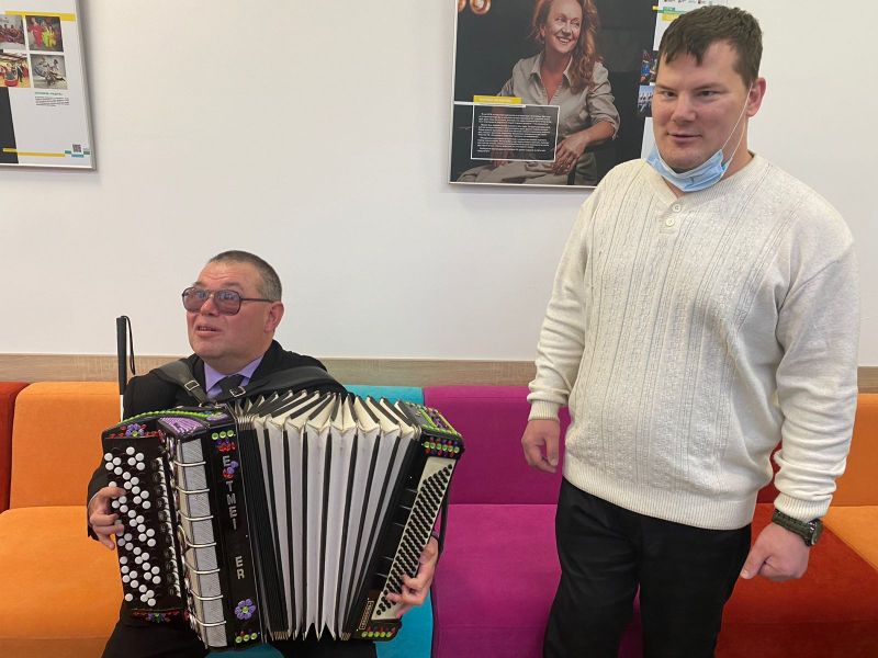 Наши подопечные с интересом наблюдали за действием на сцене из зрительного зала. Большое впечатление на них произвела группа «ТеАмо» - четыре грациозные певуньи с хрустальными голосами. А также впечатлил своим талантом баянист-виртуоз из Удмуртии, Руслан Дюкин. Еще мы подружились с волонтерами «Протяни лапу дружбы», которые занимаются канистерапией, и уже пообещали приехать в наше учреждение с визитом и двумя очаровательными собаками.