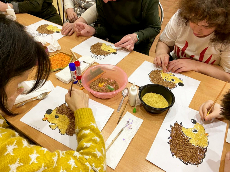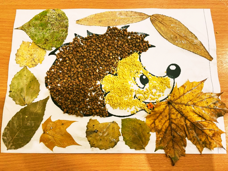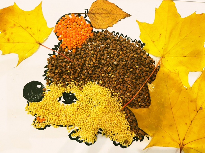 Для воплощения творческих фантазий наших подопечных, специалист по реабилитации Дюг С.Ю., провела интересный мастер-класс. Материалами для изготовления поделки "Осенний ёжик" послужила обыкновенная крупа: гречка и пшено, а ещё понадобилось немного осенних листьев, листы бумаги, кисточки и клей.