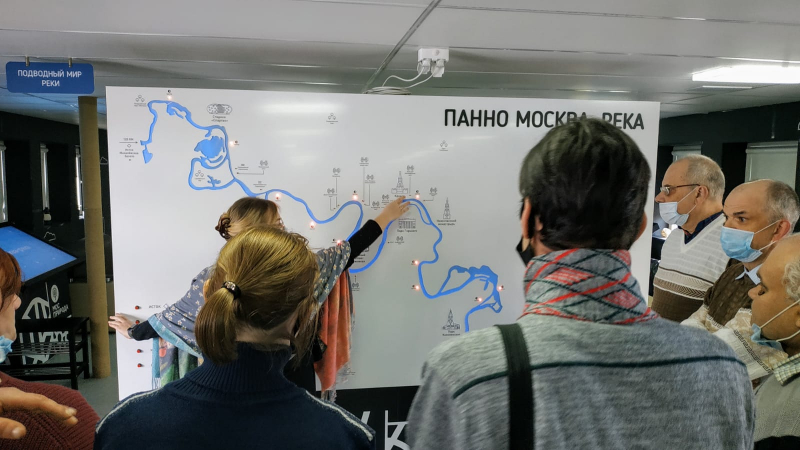 От экскурсовода ребята узнали много новой и интересной информации, например о том, что длина Москвы-реки составляет 473 км, а ширина ее меняется в разных местах. Самая широкая часть реки составляет 200 метров и находится в Лужниках, а самая узкая – 120 метров, у Кремля. На стендах ребята увидели всех обитателей надводных и подводных. В реке обитает большое разнообразие рыб: карась, окунь, судак, толстолобик, налим, единственный вид осетровых – стерлядь. Она появилась с 2000 года, - в районе Можайска выпускают мальков этого вида осетровых, занесенных в Красную книгу. А 90 процентов всех подводных обитателей составляет плотва.
