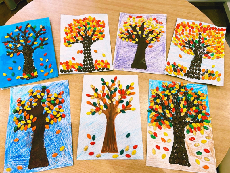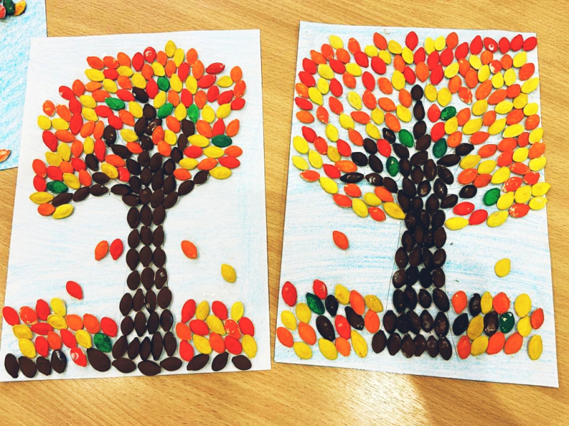 осенние деревья, получились яркими, красочными и оригинальными.