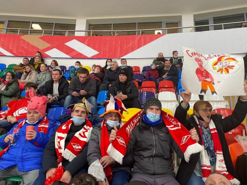 На трибуне, в первом периоде, наши болельщики вели себя сдержано, как в театре, но как только «Спартак» начал атаковать противника, они уже не могли сдержать своих эмоций и гнали команду вперёд.