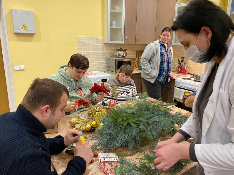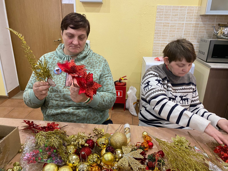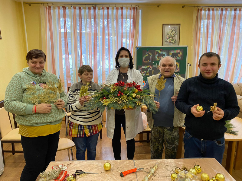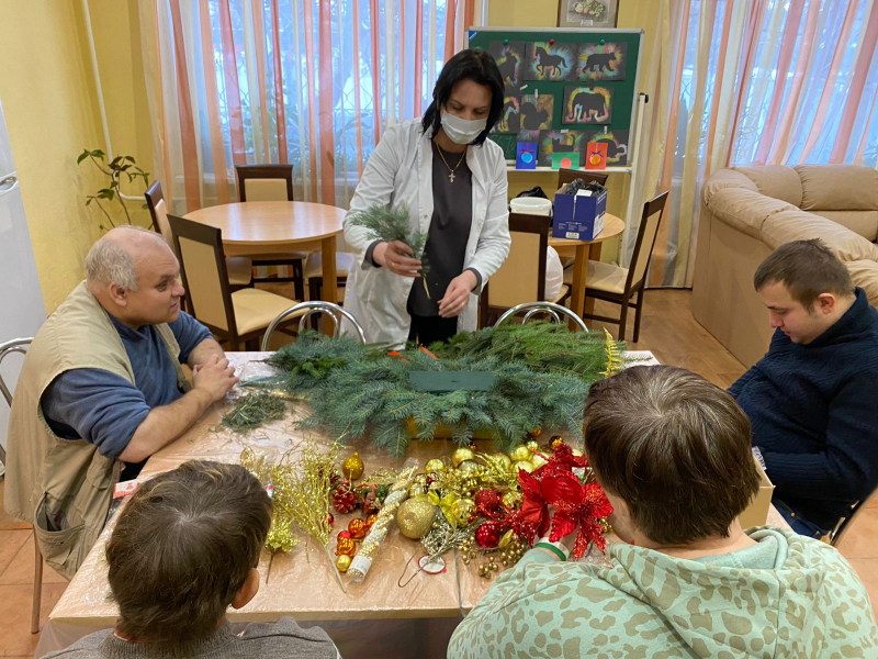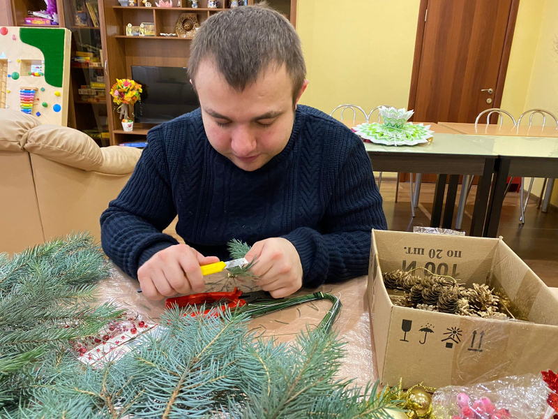 И наши ребята, вместе со специалистом по социальной реабилитации Еленой Зиминой, взялись изготовить рождественское еловое украшение.