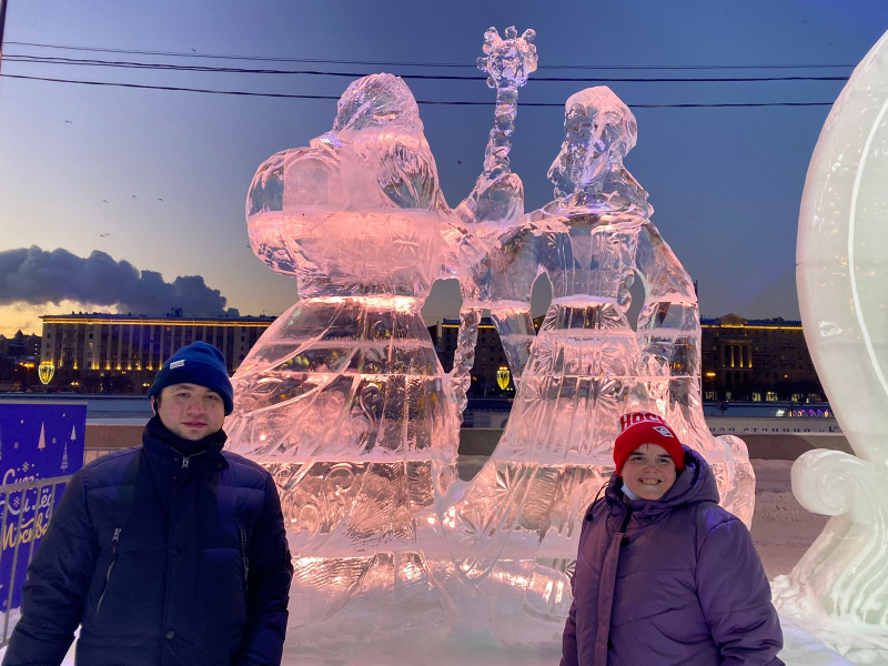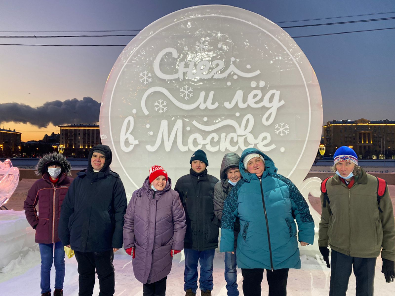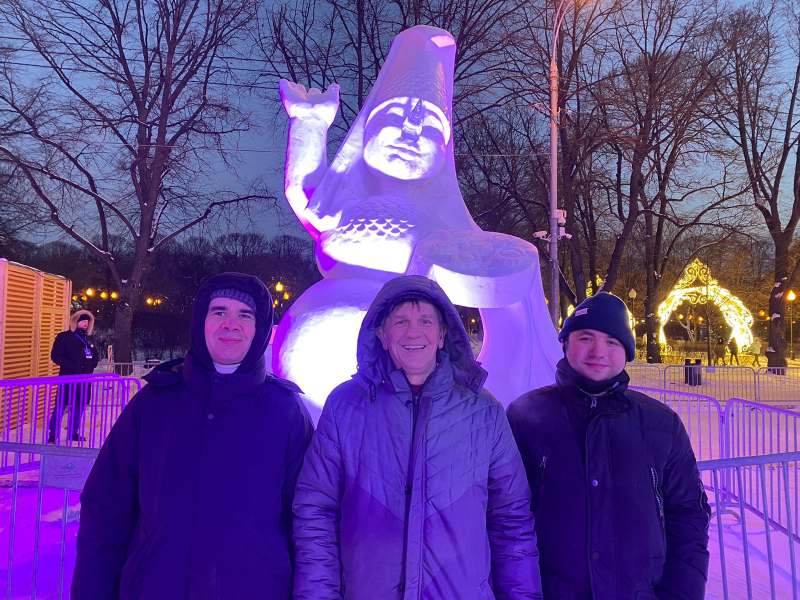 Наши ребята, в рамках кружка «Мегаполис», отправились на фестиваль общественным транспортом. Добравшись до станции «Парк Культуры», они без труда нашли площадку, расположенную на Пушкинской набережной, её хорошо видно с Крымского моста, Попав на площадку, ребята в режиме реального времени увидели, как создаются ледяные и снежные фигуры. Скульпторы, с помощью бензопил, тесаков и пил придавали форму снегу и льду. В вечерние часы, ледяные фигуры подсвечиваются светодиодными гирляндами, и это воистину завораживающее зрелище.